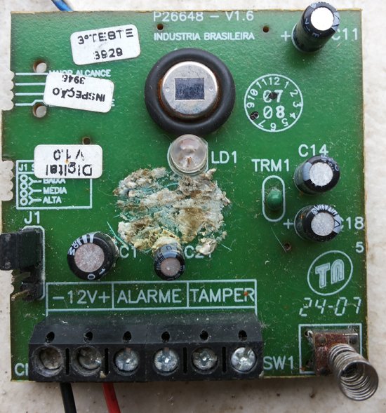 O componente principal é um passivo, ou seja, um sensor de movimentos de calor, mais conhecido como sensor infravermelho.