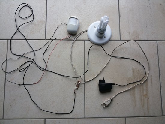 1 passivo, uma fonte de 12 volts com capacidade de fornecer 1 ampère, um bocal, uma lâmpada, fios e uma pedacinho de placa de fenolite com ilhas para soldagem.